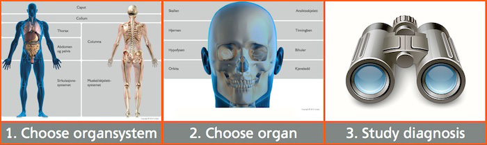We have taken the most common reasons for referral as our basis and tried to make RadGuide as easy to use as possible. You are always just 2 clicks away from the information you need. From the front page, one click will take you to the relevant organ system, and from there one more click will take you to the organ to be examined. There is also a search function that makes it easy to search for a diagnosis and find what you should refer to.